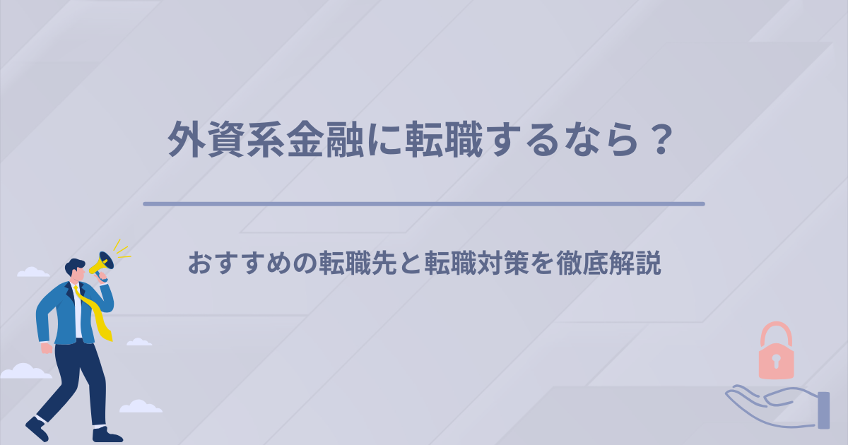 この記事で解決できるお悩み 外資系金融業界に転職したい 銀行員が外資系金融業界に転職するためのポイントが知りたい どのような転職先があるのか知りたい この記事では外資系の金融企業への転職を考えている人に向けて、メリットや注意点、転職を成功さ... -